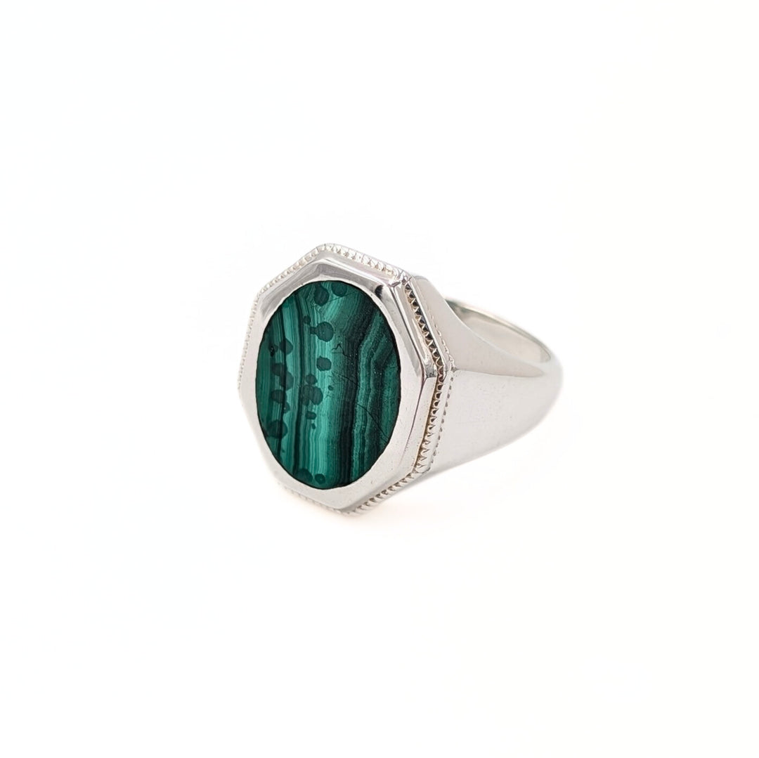 Men’s Malachite Cabochon Ring in Sterling Silver