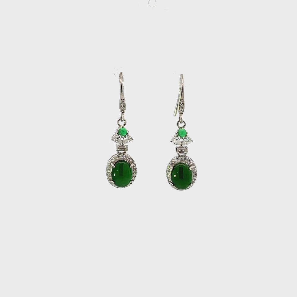 Jadeite and Cubic Zirconia Drop Earrings in Sterling Silver