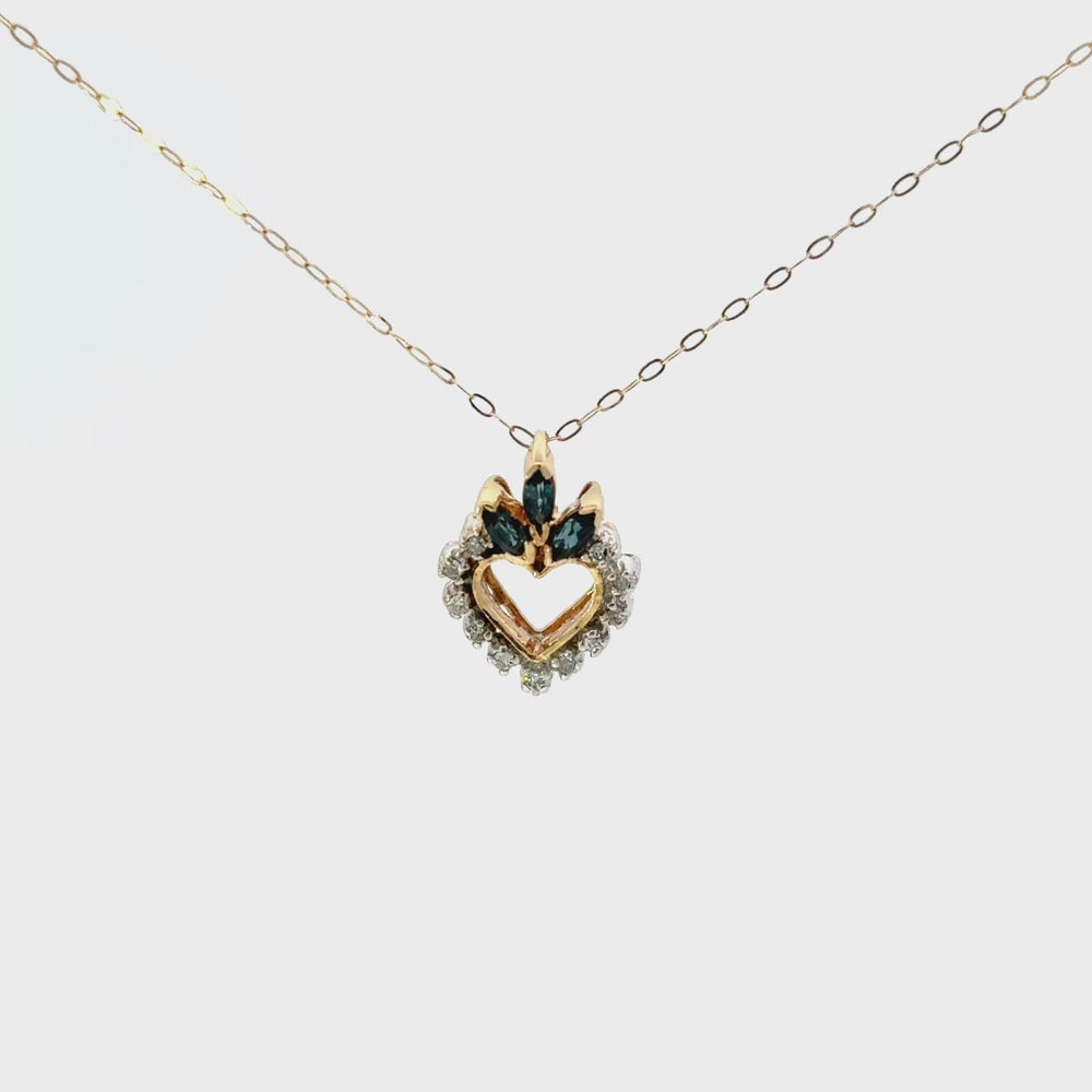 Vintage Blue Sapphire & Diamond Heart Necklace in 14K Gold