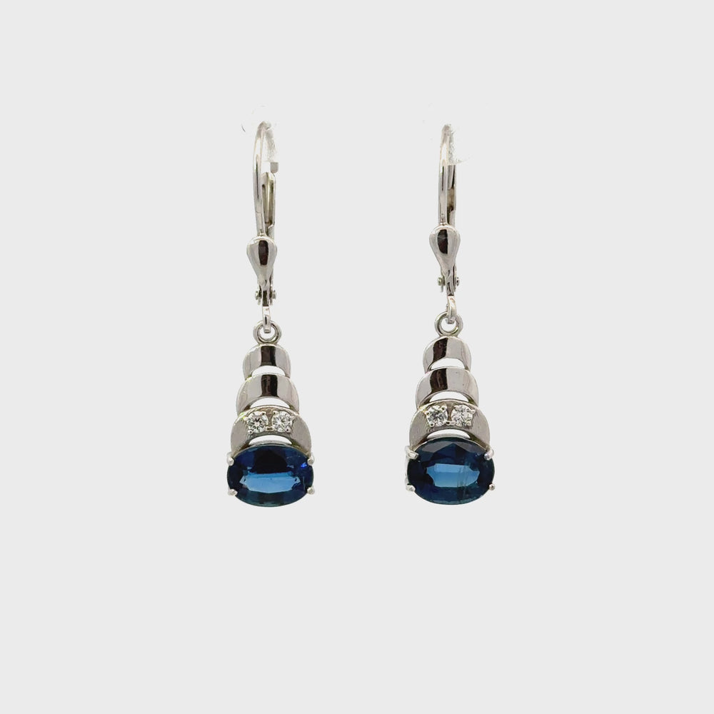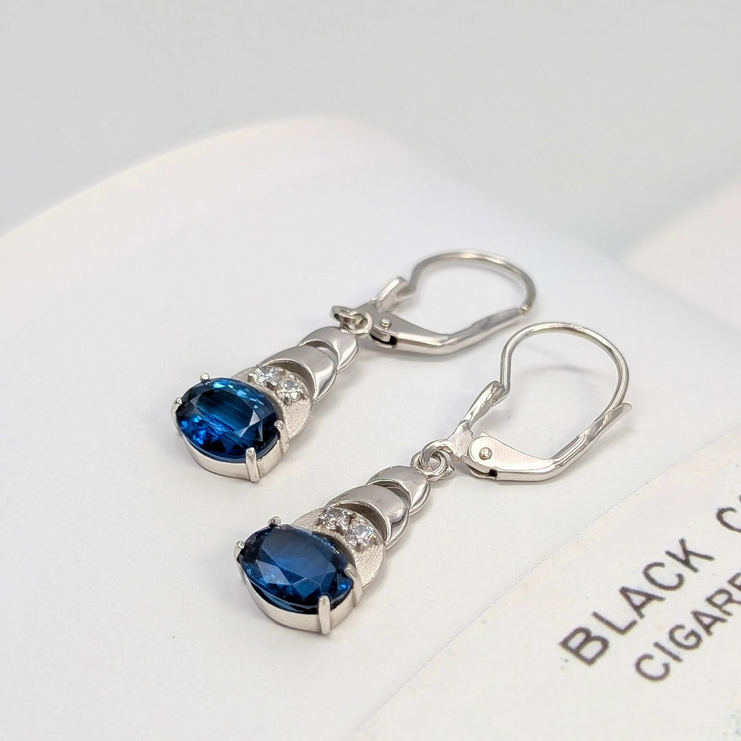 Blue Kyanite & Cubic Zirconia Dangle Earrings in Sterling Silver