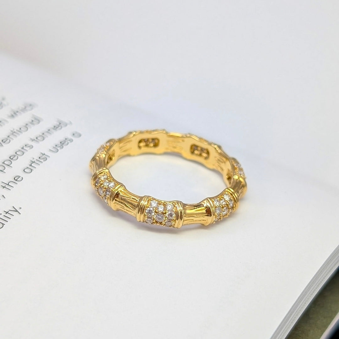 Pre-Loved Diamond Bamboo Ring in 14K Yellow Gold