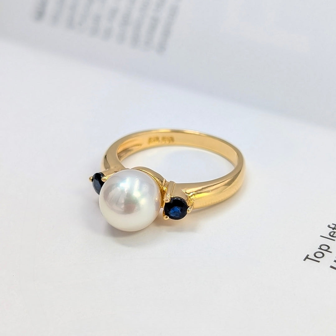 Vintage Pearl & Sapphire Ring in 14K Yellow Gold