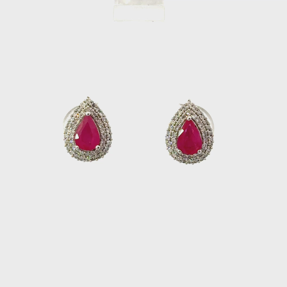 Ruby & Diamond Halo Stud Earrings in 14K White Gold
