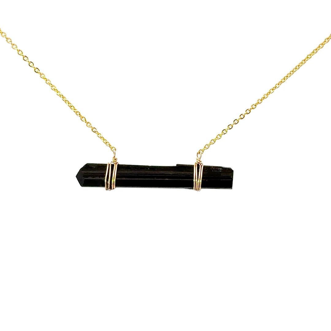 Black Tourmaline Bar Necklace in Gold Over Sterling Silver