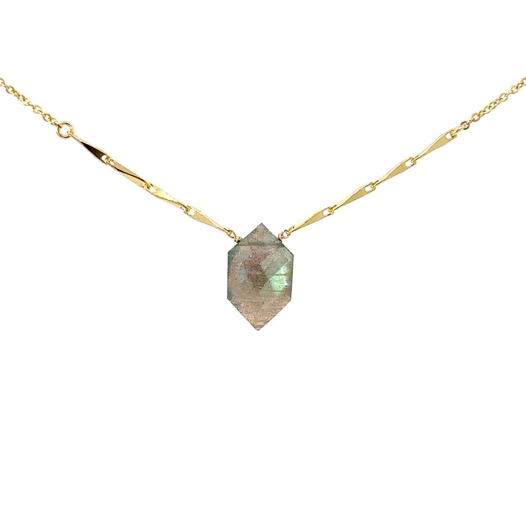 Labradorite Hexagon Necklace in Gold Over Sterling