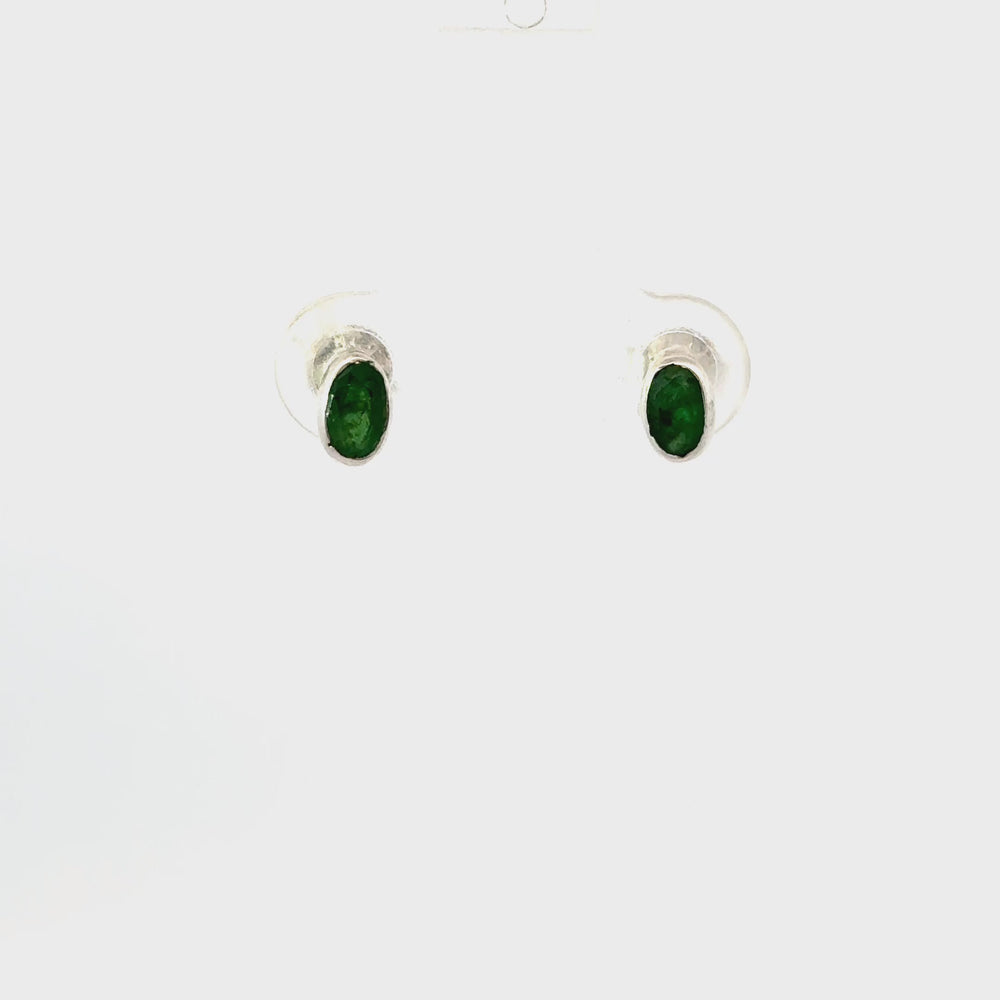 These refined stud earrings feature deep green oval-cut Emeralds, bezel-set in sleek Sterling Silver for a timeless and secure design. The natural inclusions within each Emerald give them a unique character and glow, perfect for adding a hint of earthy elegance to any look.