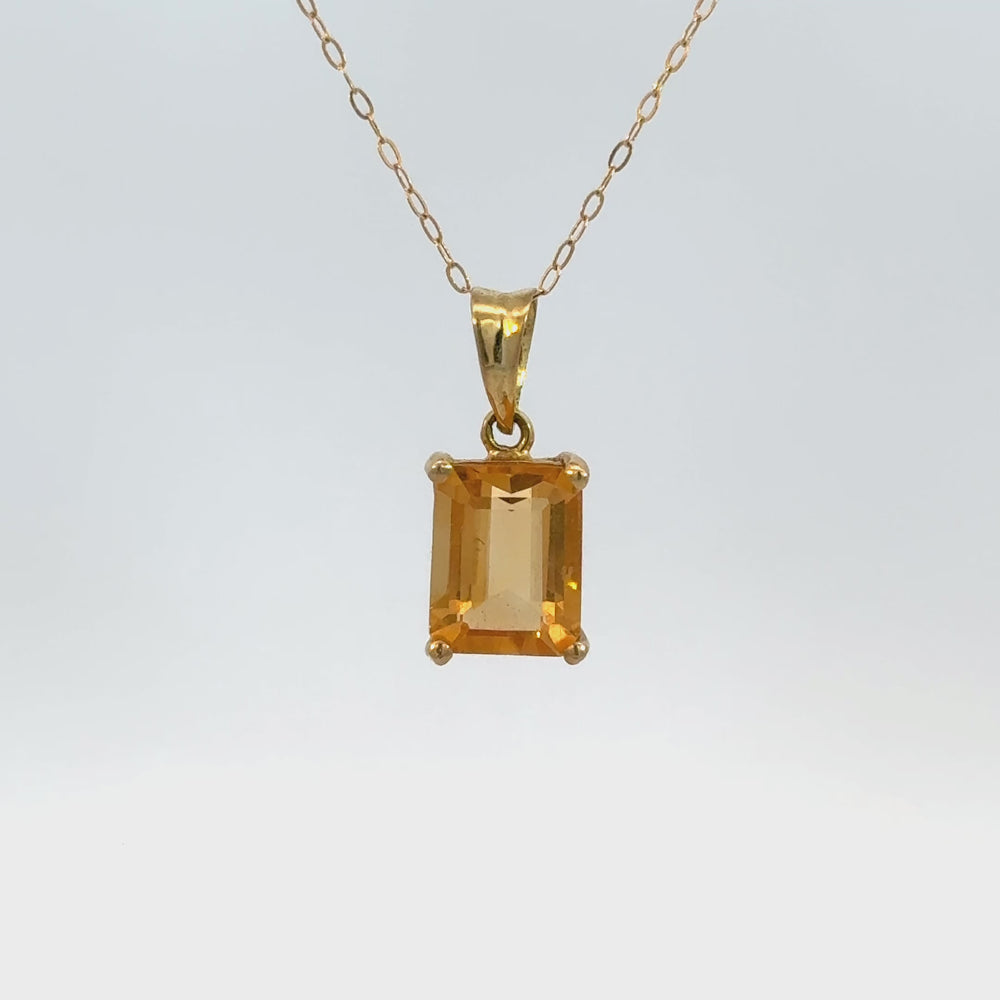 Emerald Cut Citrine Necklace in 14k Yellow Gold
