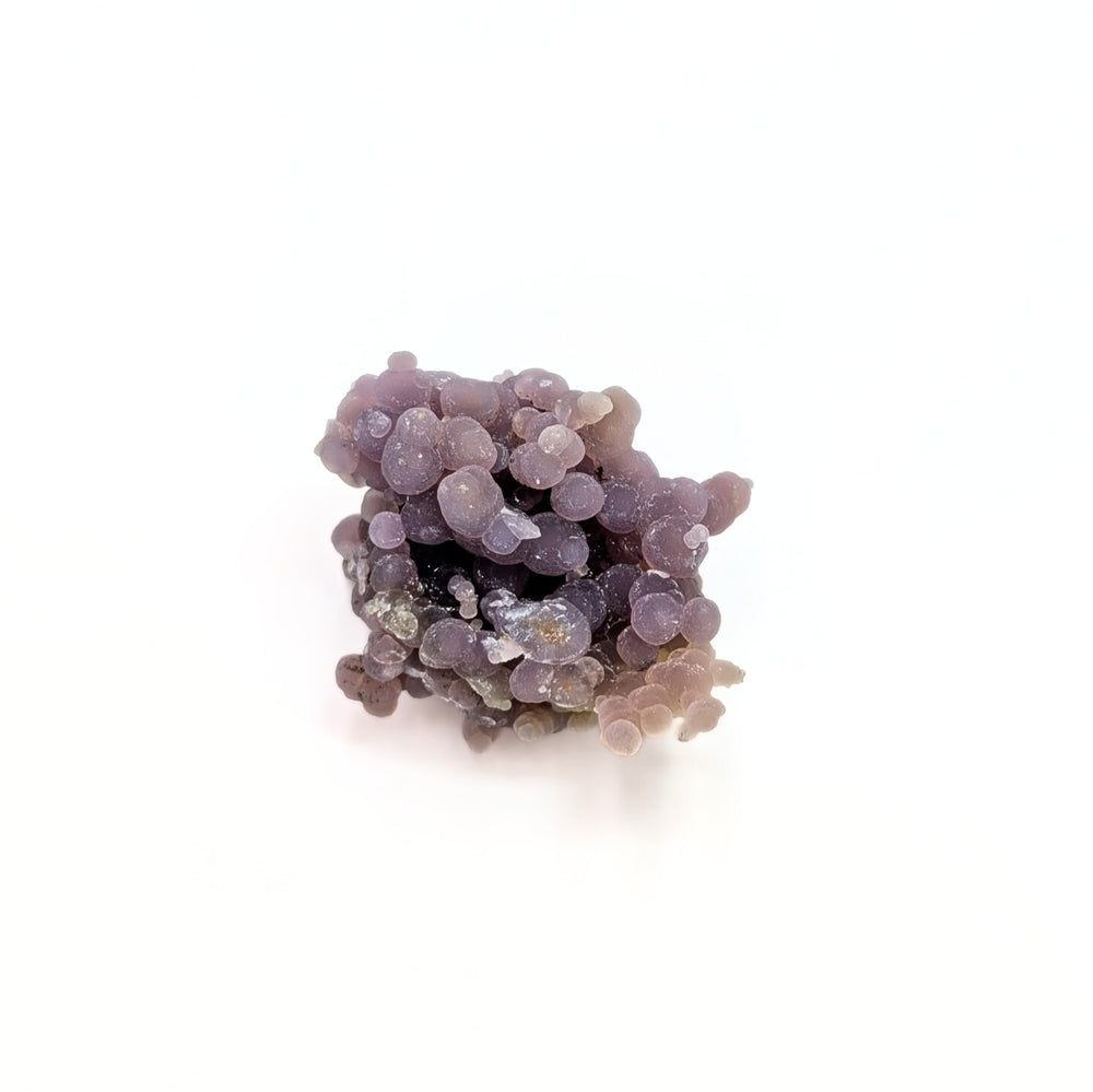 This petite Grape Agate cluster features tightly formed spheres in soft lavender and plum tones, with delicate mineral inclusions that add subtle shimmer and texture.