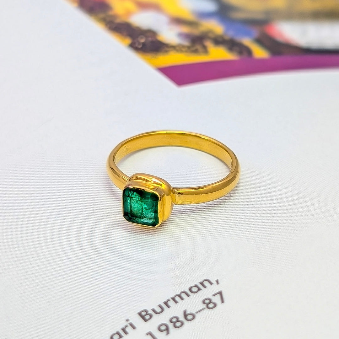 Emerald Bezel Set Ring in 18K Gold over Sterling Silver