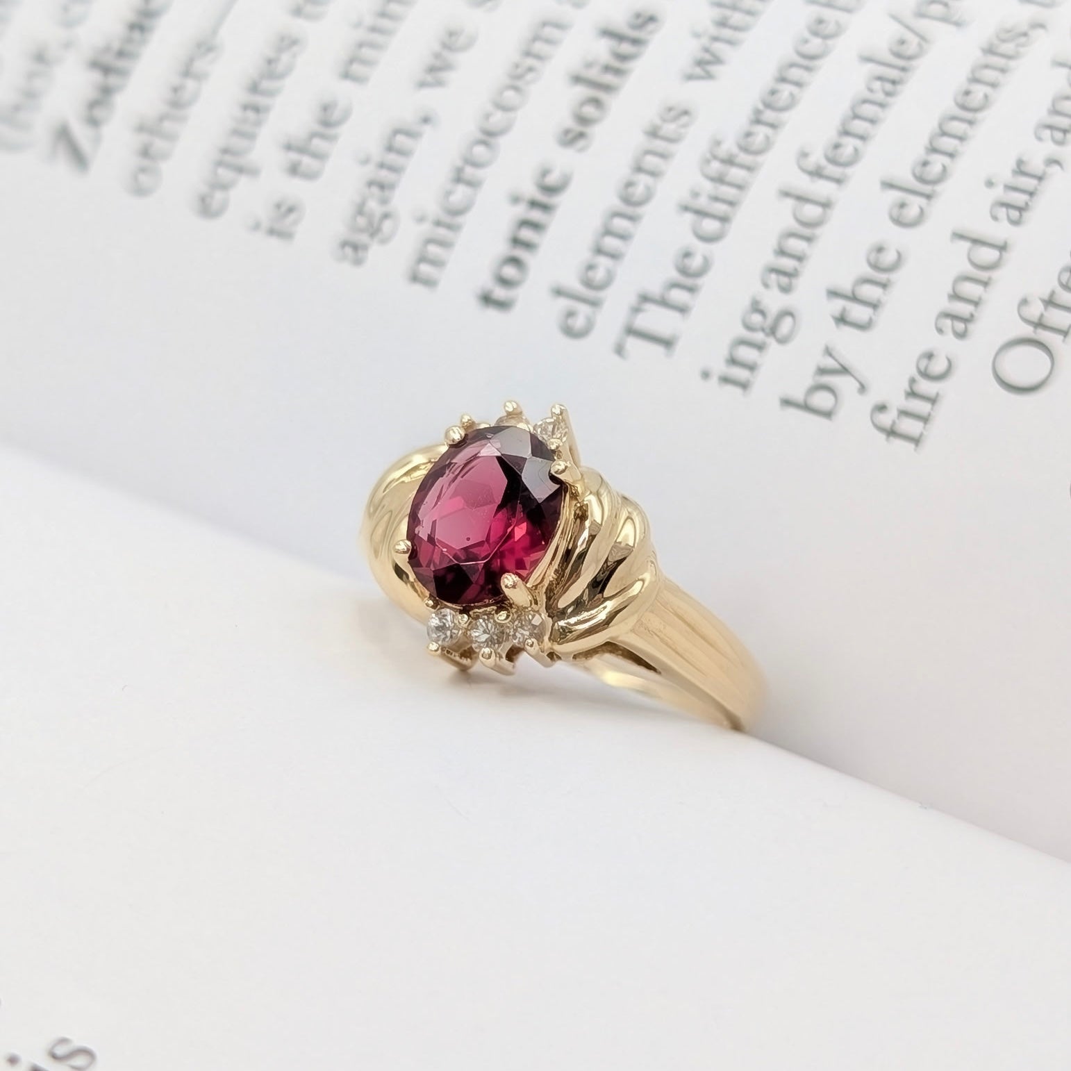 Vintage Rhodolite Garnet & Diamond Ring in 14k Yellow Gold