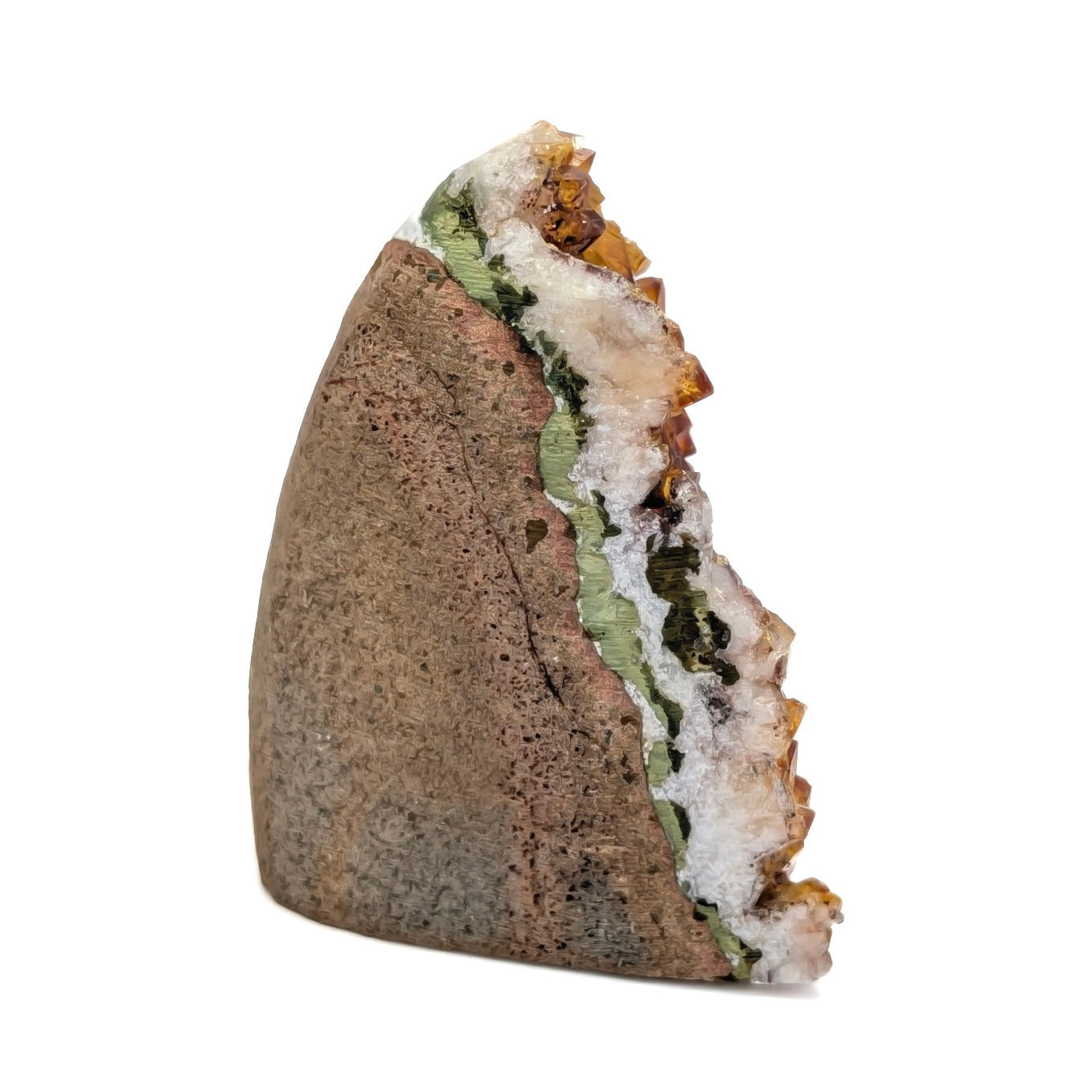 Citrine is traditionally associated with confidence, abundance, and energizing clarity. It is often used to support motivation, encourage optimism, and promote a bright, uplifting atmosphere in workspaces and living areas.