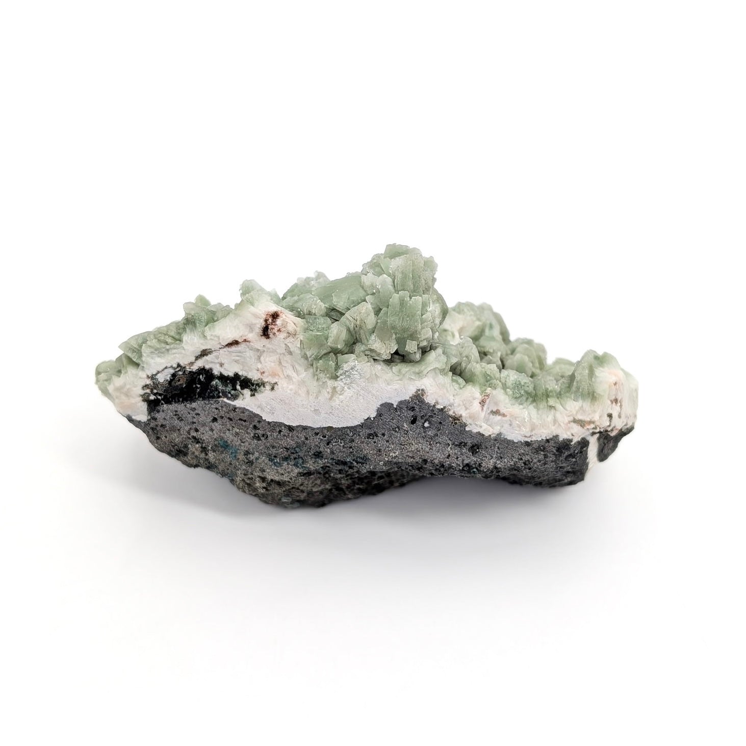 This natural Green Heulandite freeform features softly layered crystal formations in soothing green tones, creating a calm and organic appearance. The gently tabular crystals give the piece texture and depth, highlighting the natural way Heulandite forms in clustered growth.