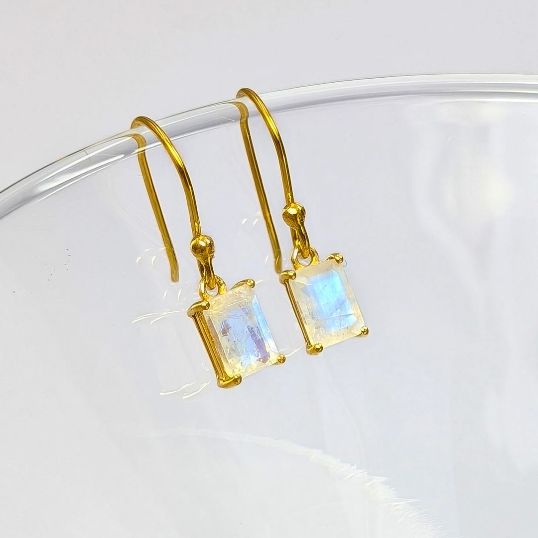 Rainbow Moonstone Dangle Earrings in 18K Gold Plated over Sterling Silver