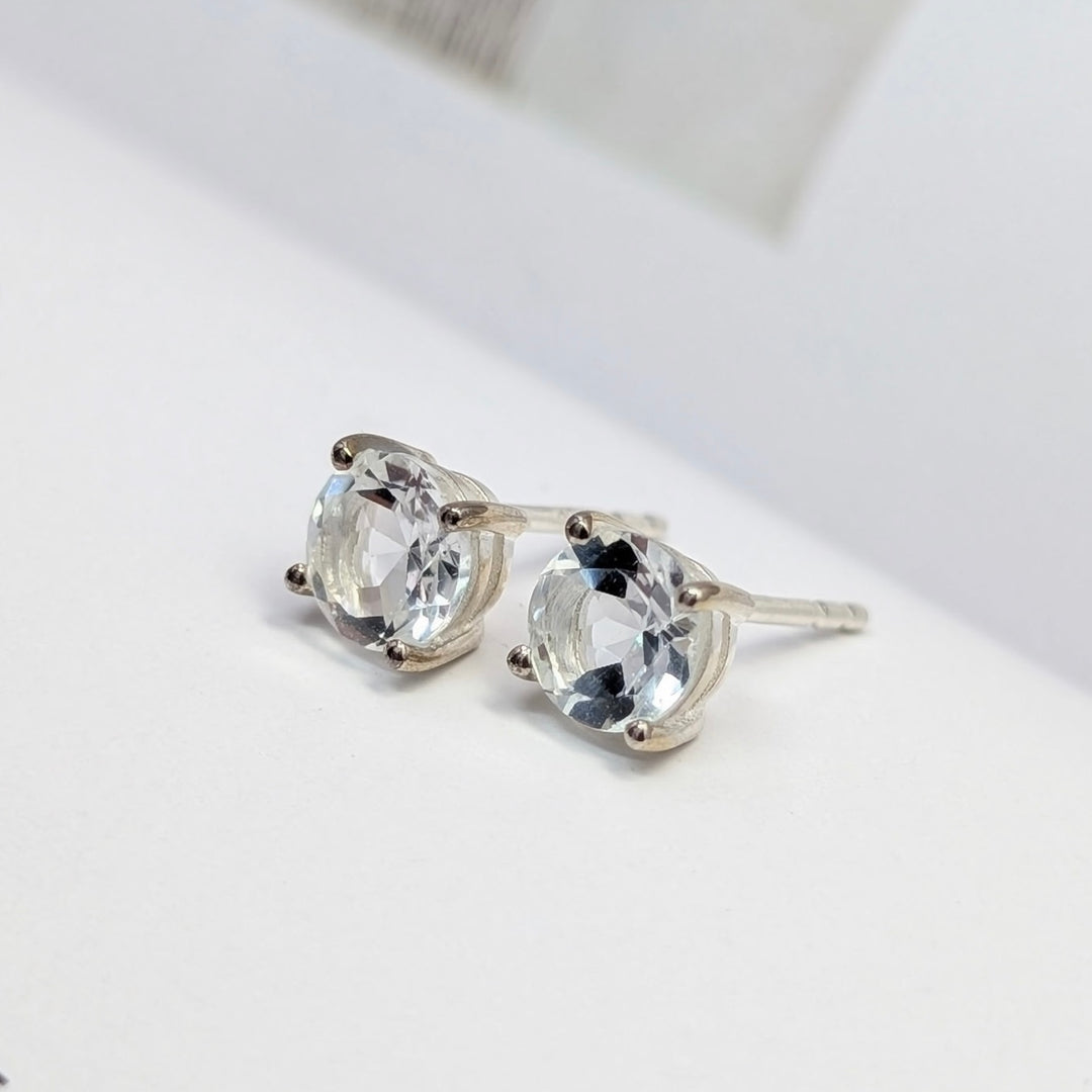 Brazilian White Topaz Stud Earrings in Sterling Silver