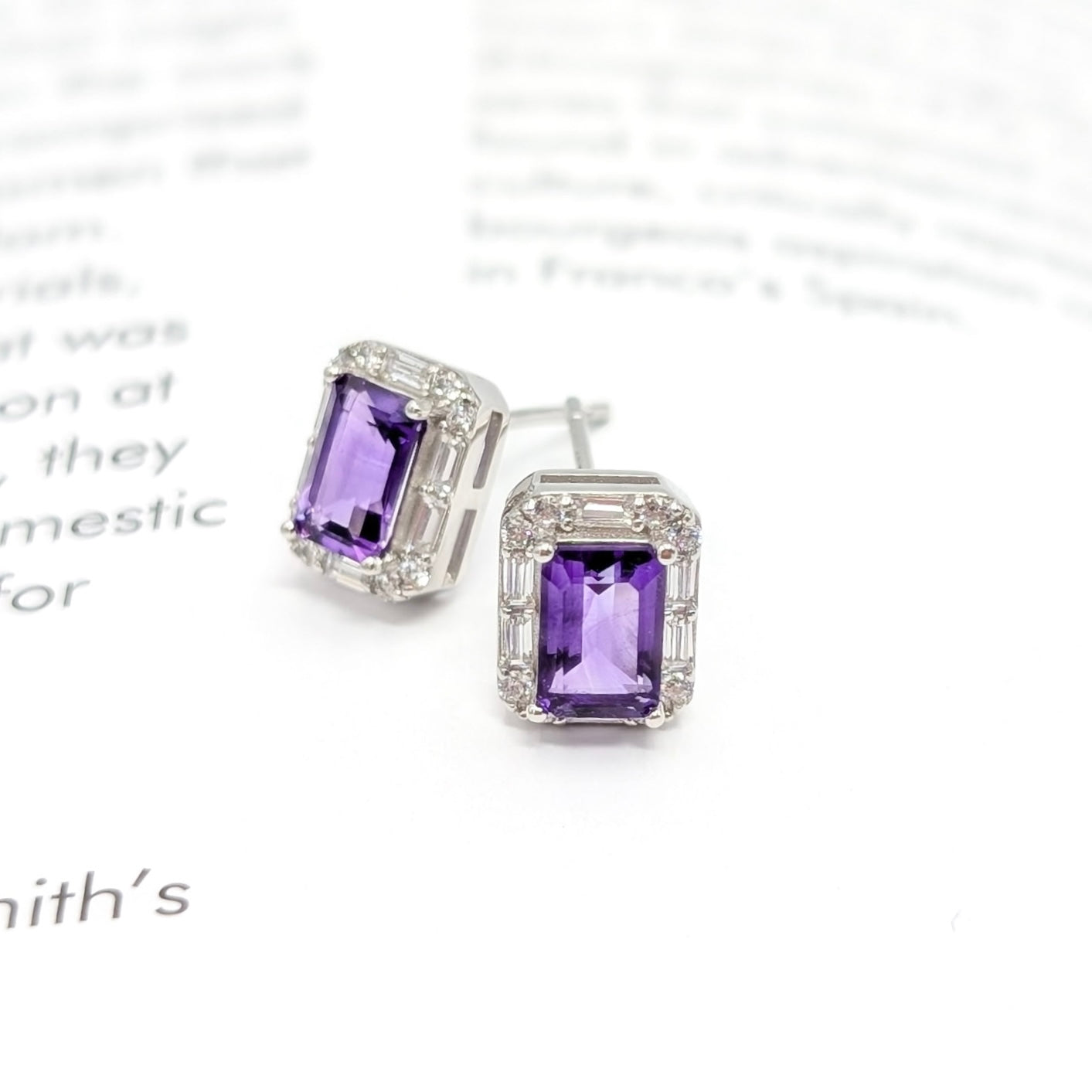 Set in polished Sterling Silver, the structured rectangular silhouette gives these earrings a timeless and sophisticated presence. The clean lines of the emerald cut enhance the natural depth of the Amethyst while the Cubic Zirconia adds radiant sparkle from every angle.