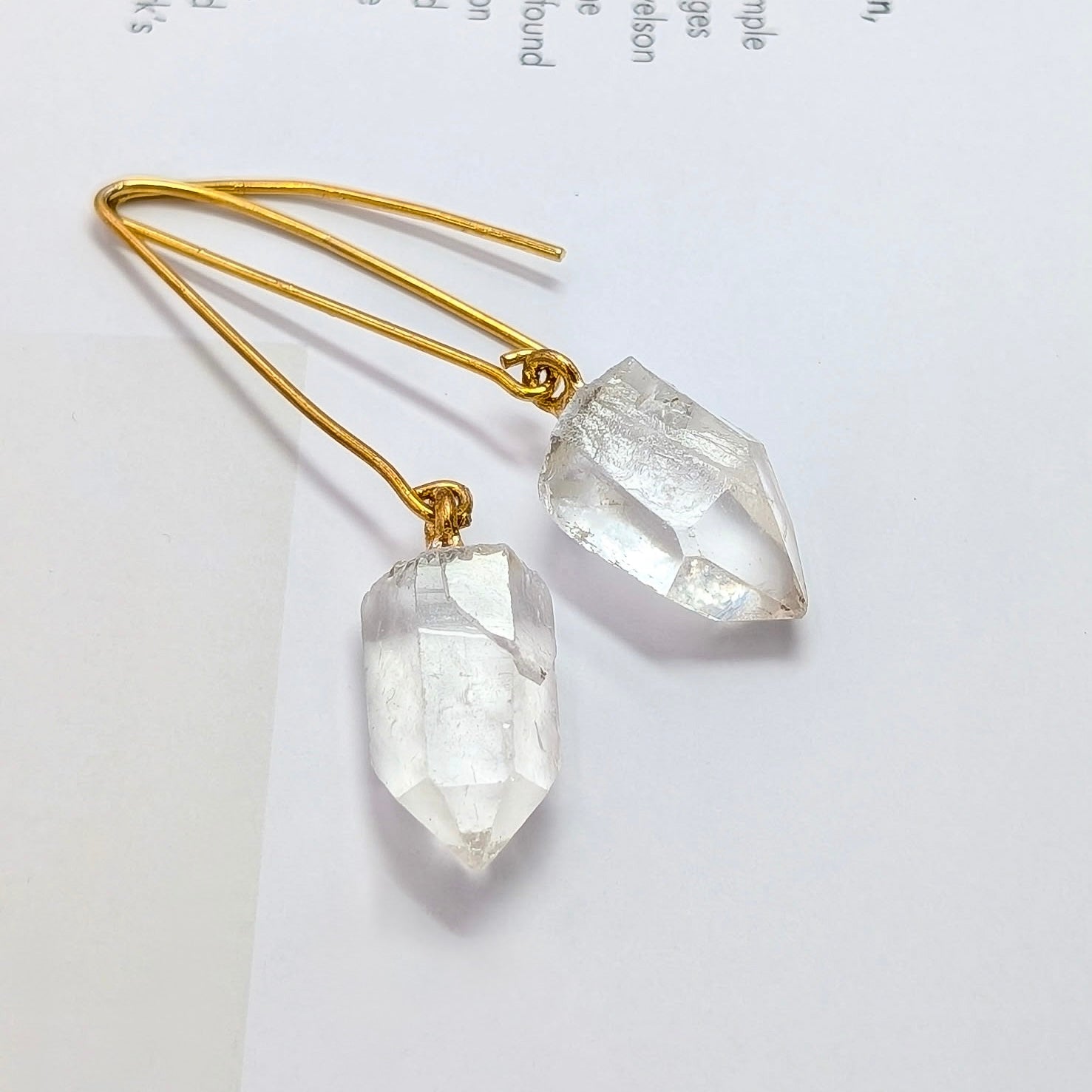 Two pairs of these Brazilian Clear Quartz dangle earrings are available. You will receive one pair, selected at random. Natural variations in clarity, shape, and internal features are expected with genuine Clear Quartz.