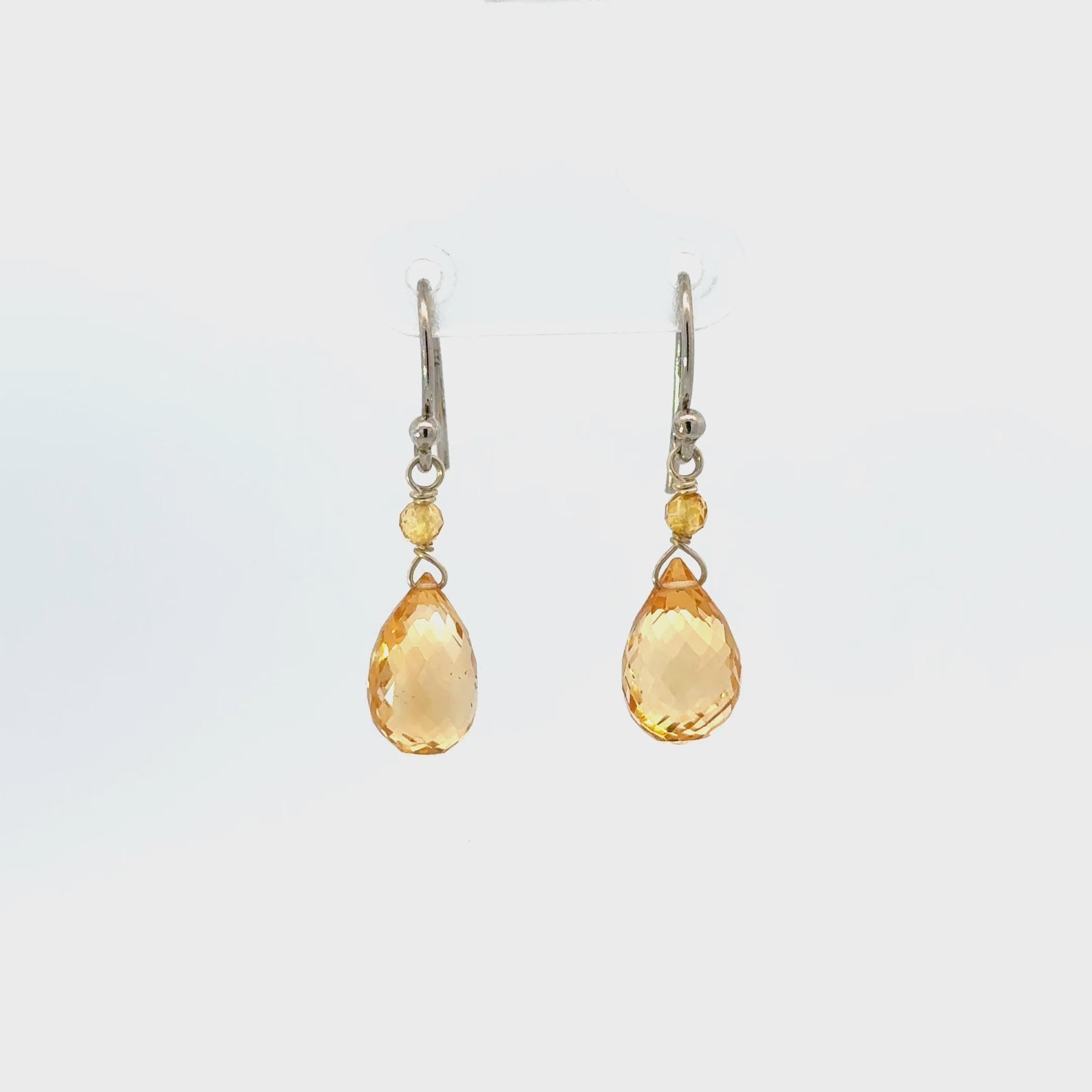 These radiant Sterling Silver earrings feature beautifully faceted Citrine gemstones in a classic teardrop silhouette, accented by a delicate faceted Citrine bead above each drop. The warm golden hue of the Citrine glows with soft brilliance, reflecting light with every movement.