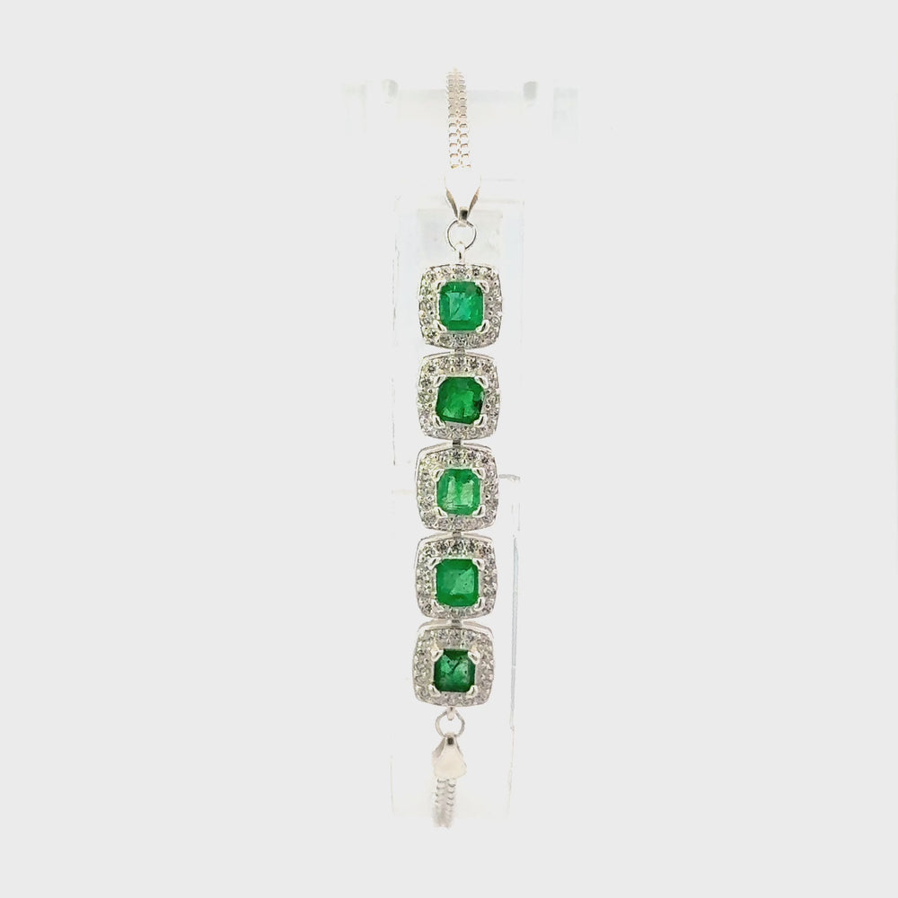 Natural Emerald & Cubic Zirconia Bracelet in Sterling Silver