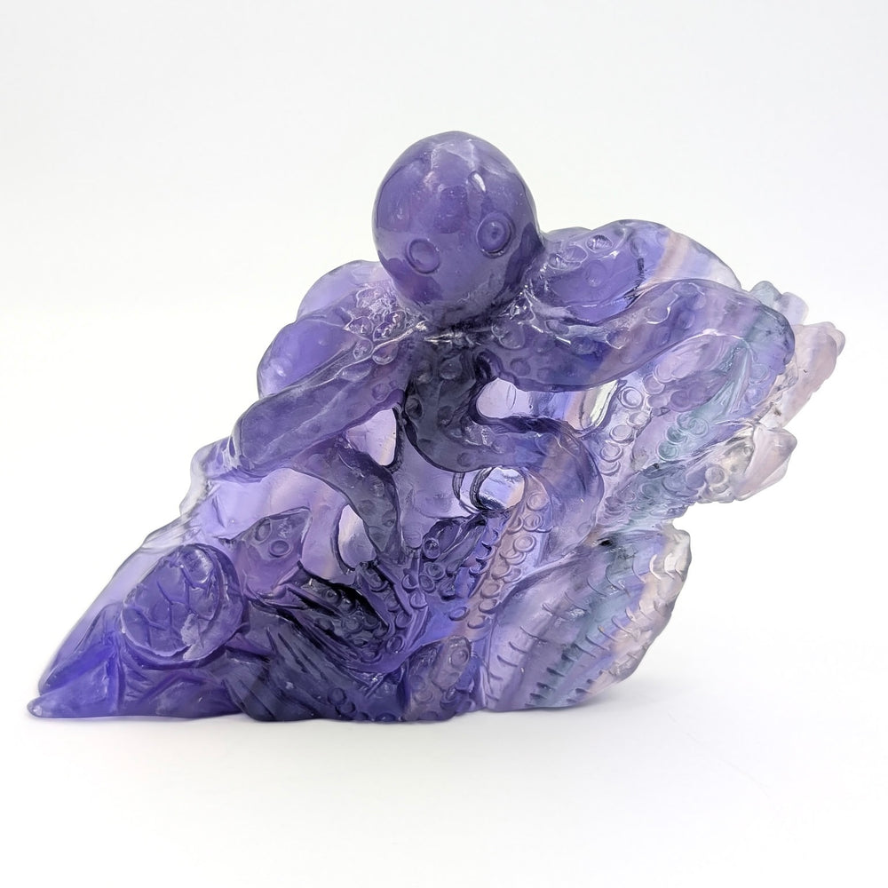 Rainbow Fluorite Octopus & Fish Ocean Carved Sculpture