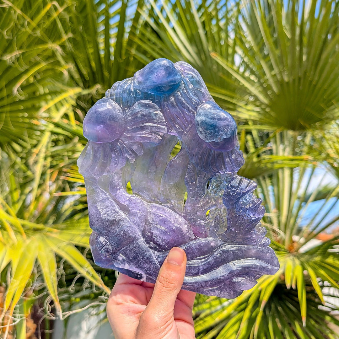 Rainbow Fluorite Jellyfish Carved Sculpture