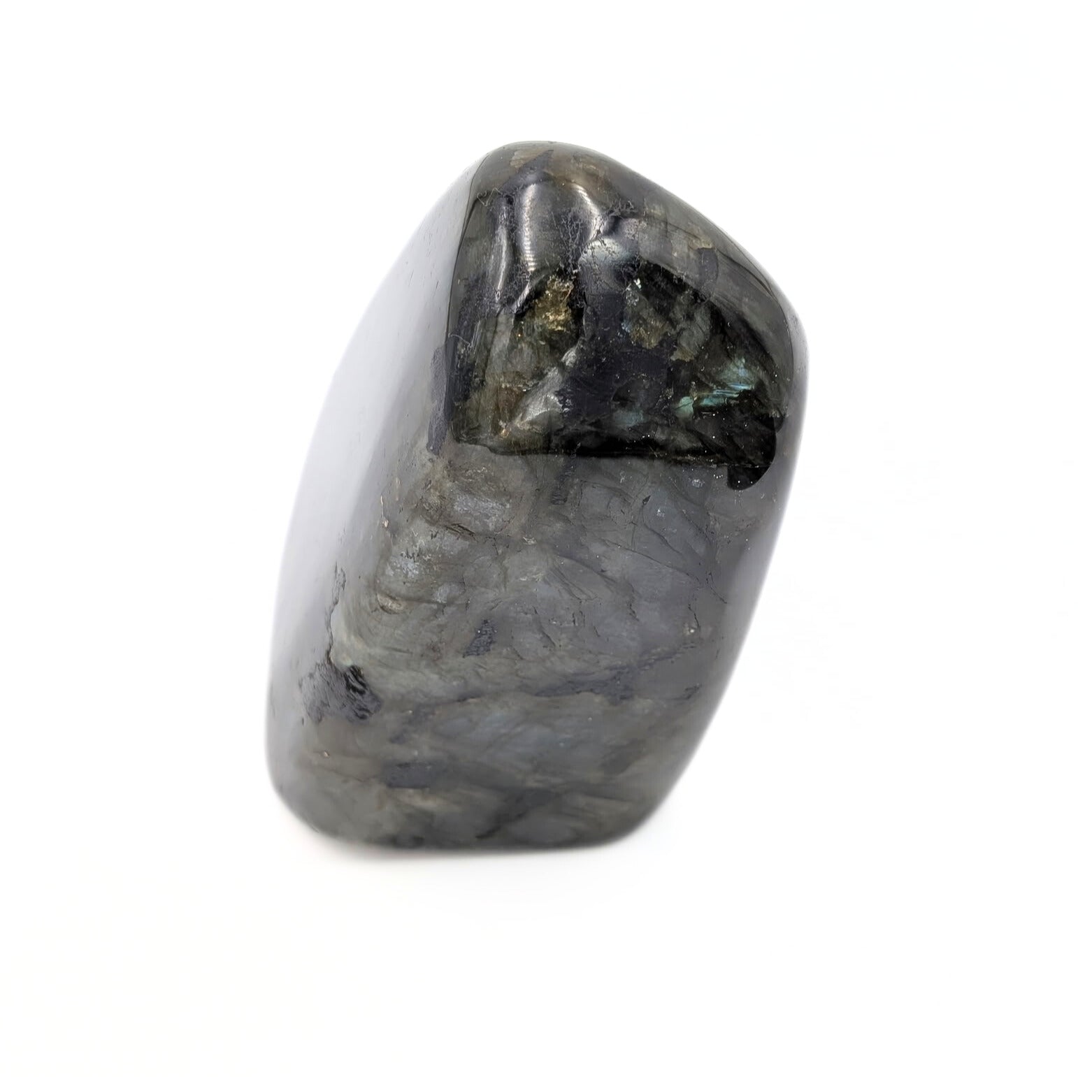 This Labradorite Freeform features a vivid Blue flash with captivating Golden-Green undertones that shift beautifully as light moves across its surface. The polished finish enhances the stone’s natural depth and veining, creating an elegant, luminous piece that captures Labradorite’s signature play of color.