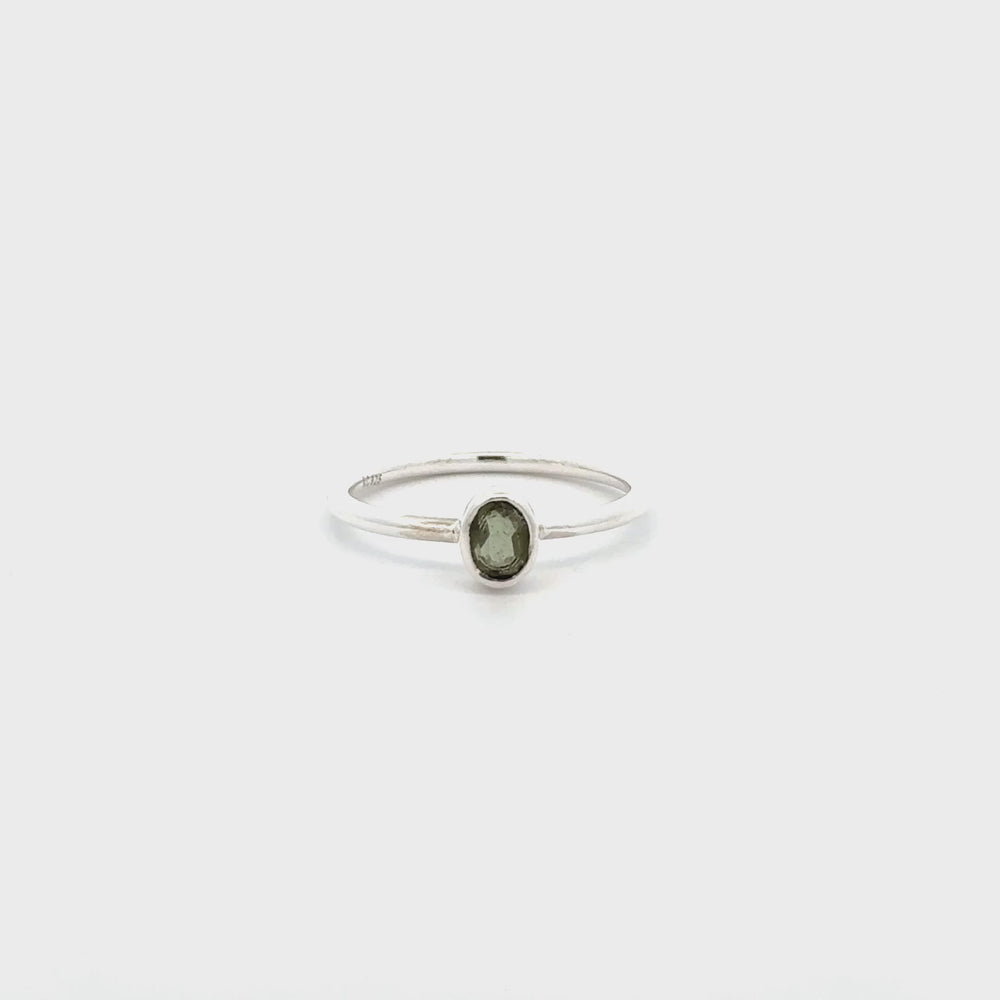 Elevate your style with the natural allure of this faceted Moldavite ring, handcrafted in Sterling Silver. The deep green gemstone, known for its unique origins from meteorite impact, is beautifully set in a minimalist bezel to highlight its organic beauty and natural inclusions.