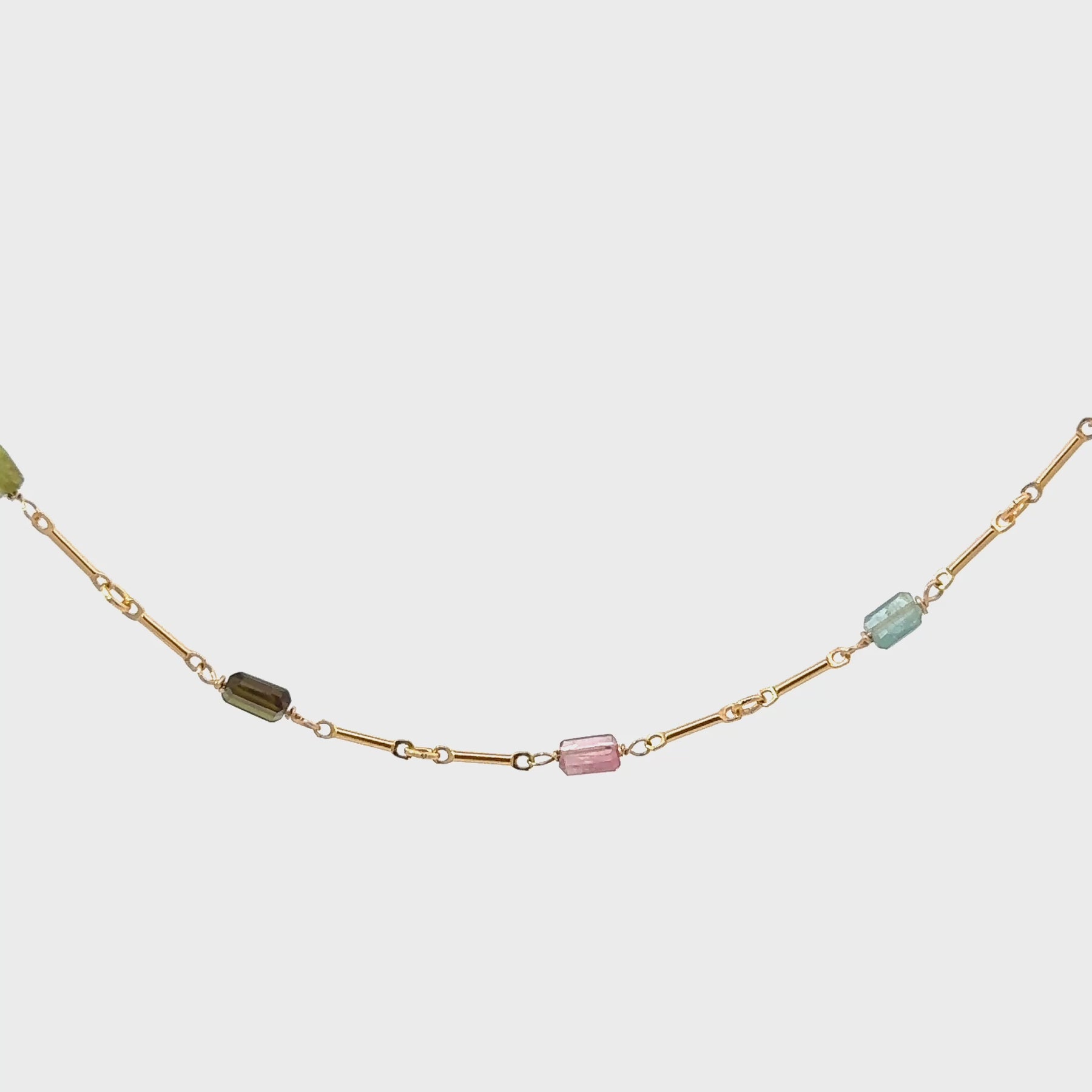 Multi-Colored Tourmaline Bar Chain Necklace in 14K Gold Fill