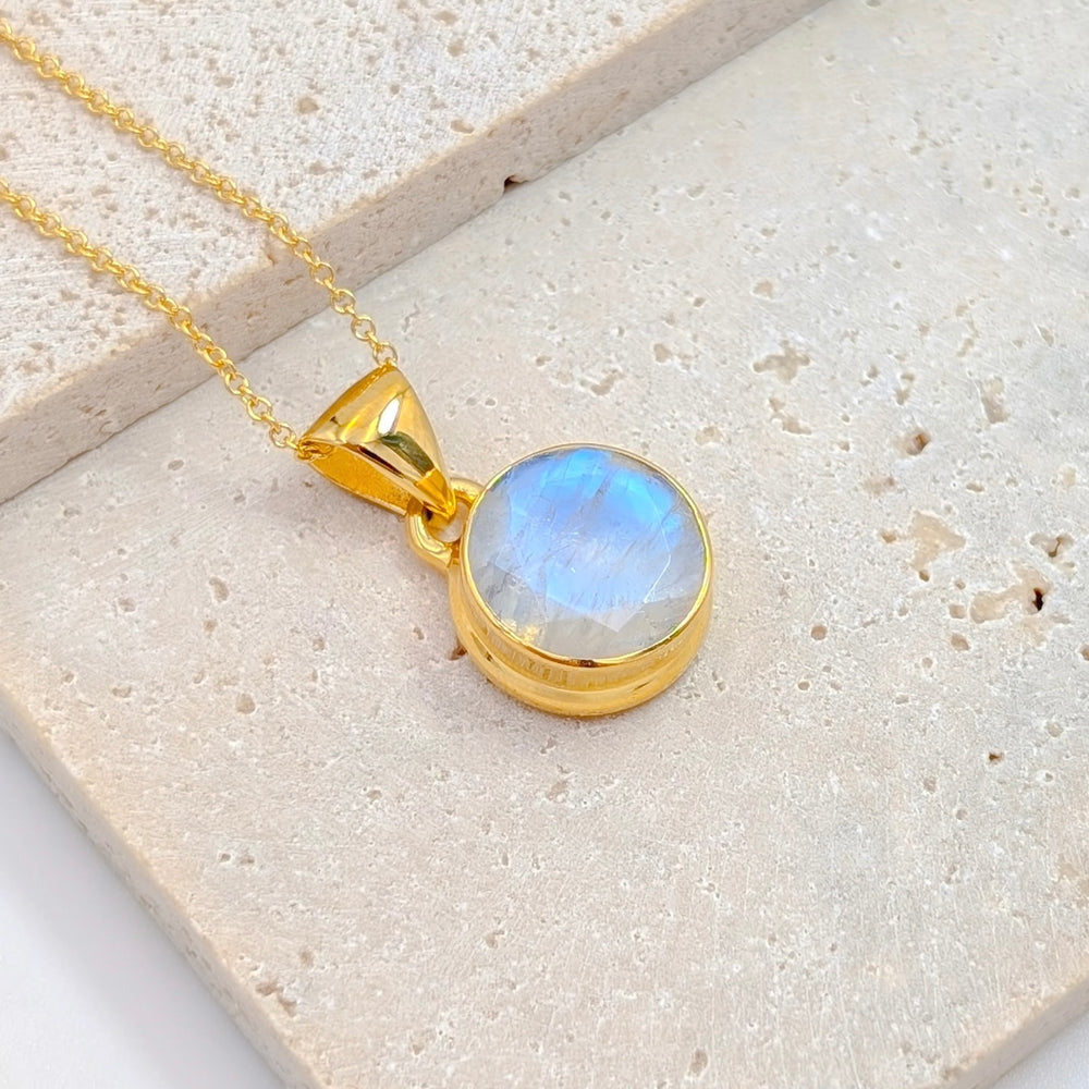 Rainbow Moonstone Necklace in Gold-Plated Sterling Silver