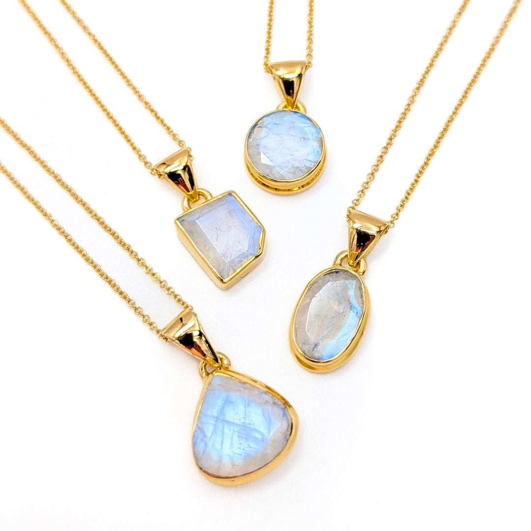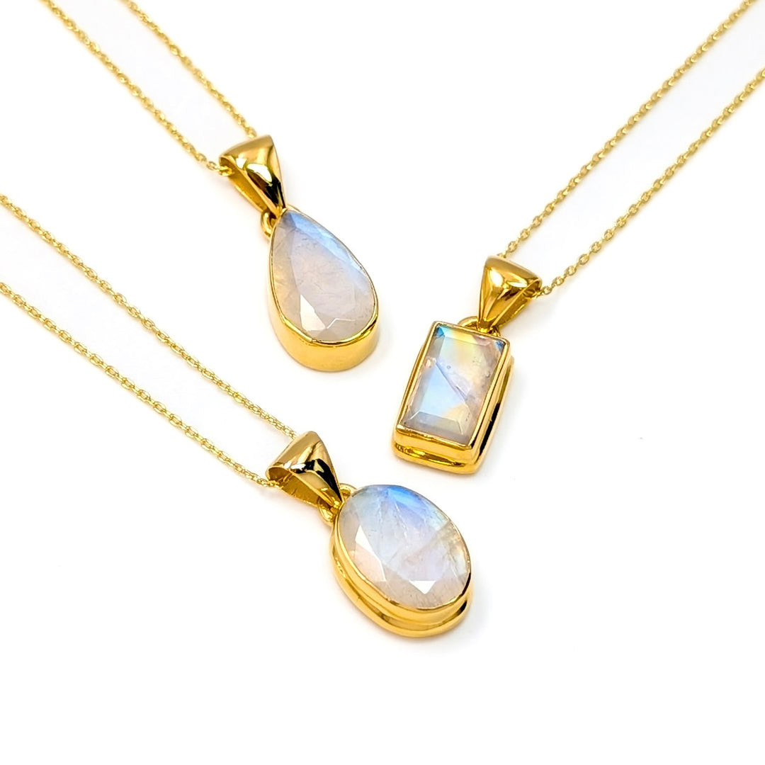 Faceted Rainbow Moonstone Pendant Necklace in 18K Gold-Plated Sterling Silver