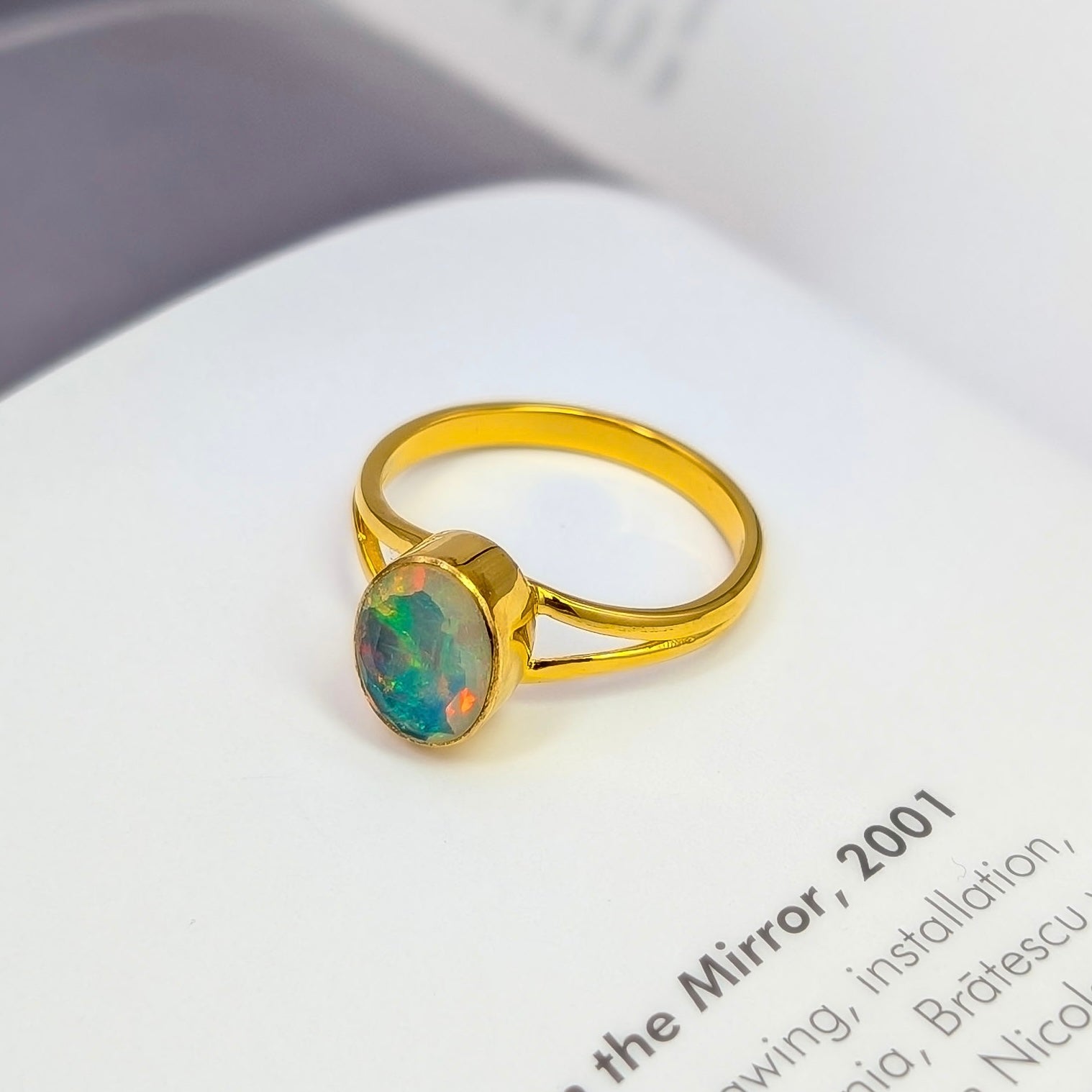 Opal Bezel Set Ring in 18K Gold over Sterling Silver