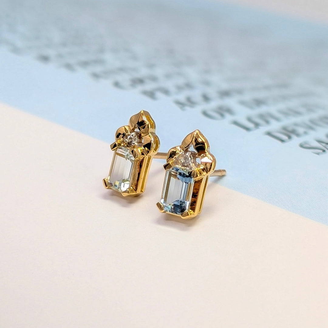 Vintage Aquamarine & Diamond Stud Earrings in 10K Yellow Gold