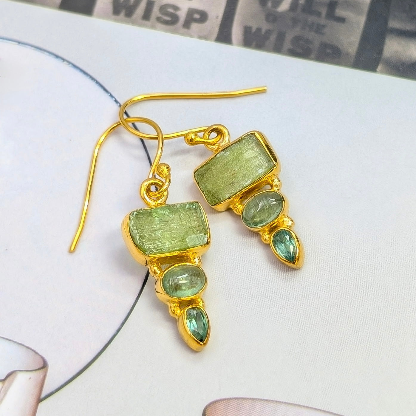 Green Kyanite Dangle Earrings in 18K Gold-Plated Sterling Silver