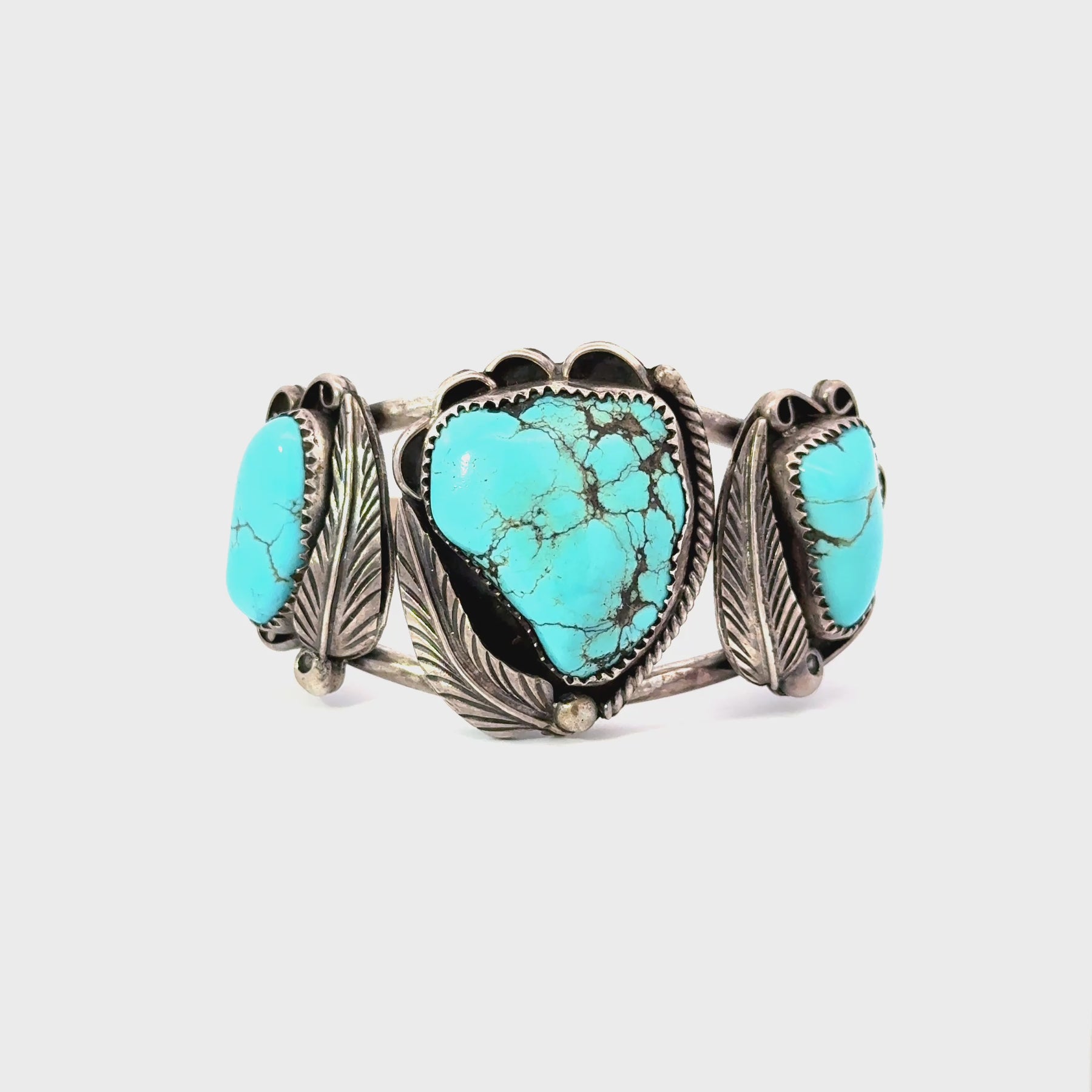 A natural patina is present throughout the sterling silver, enhancing its depth and dimension. This aged finish highlights the handcrafted details and creates rich character that only time can develop. As a vintage piece, subtle variations in the turquoise and gentle signs of age add to its individuality and authenticity.