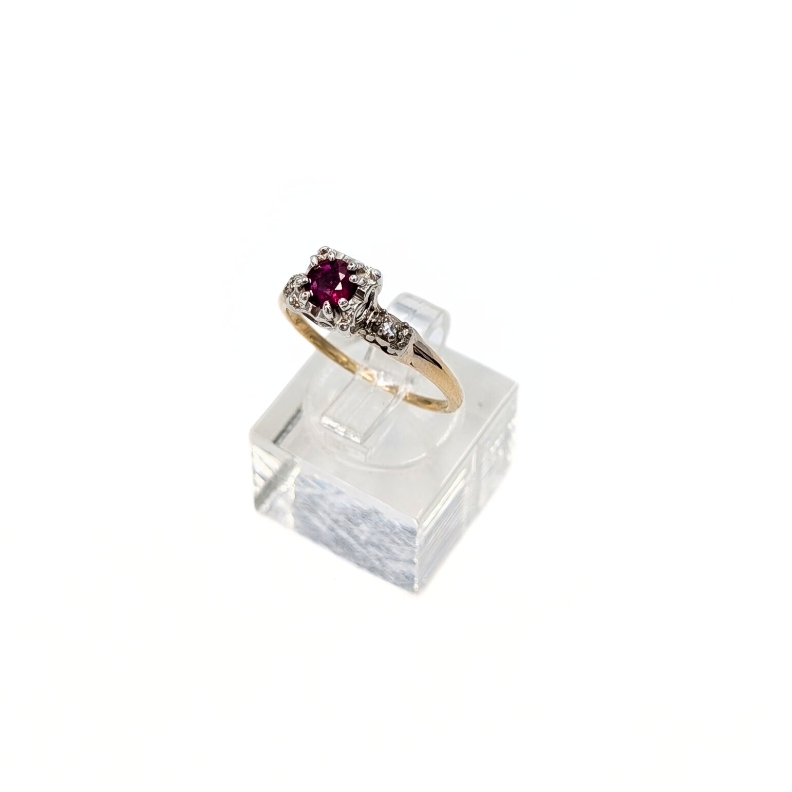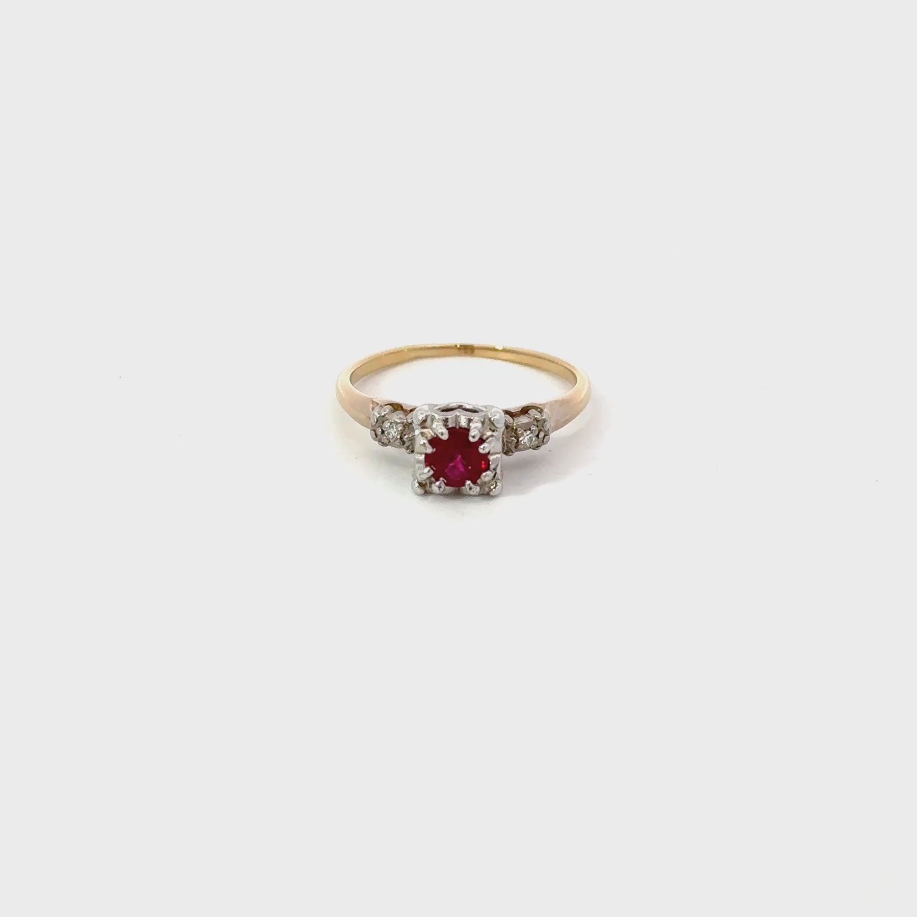 Vintage Ruby & Diamond Ring in 14K White & Yellow Gold