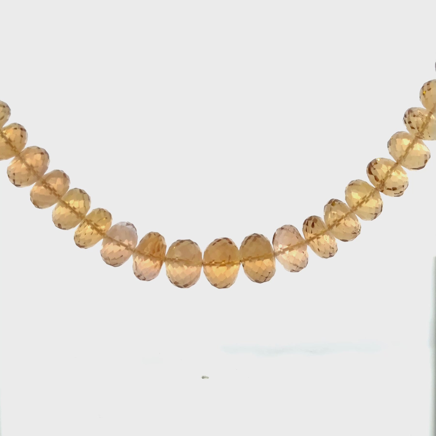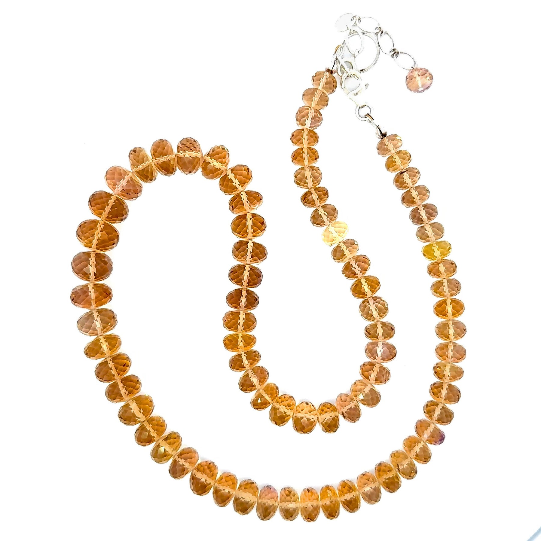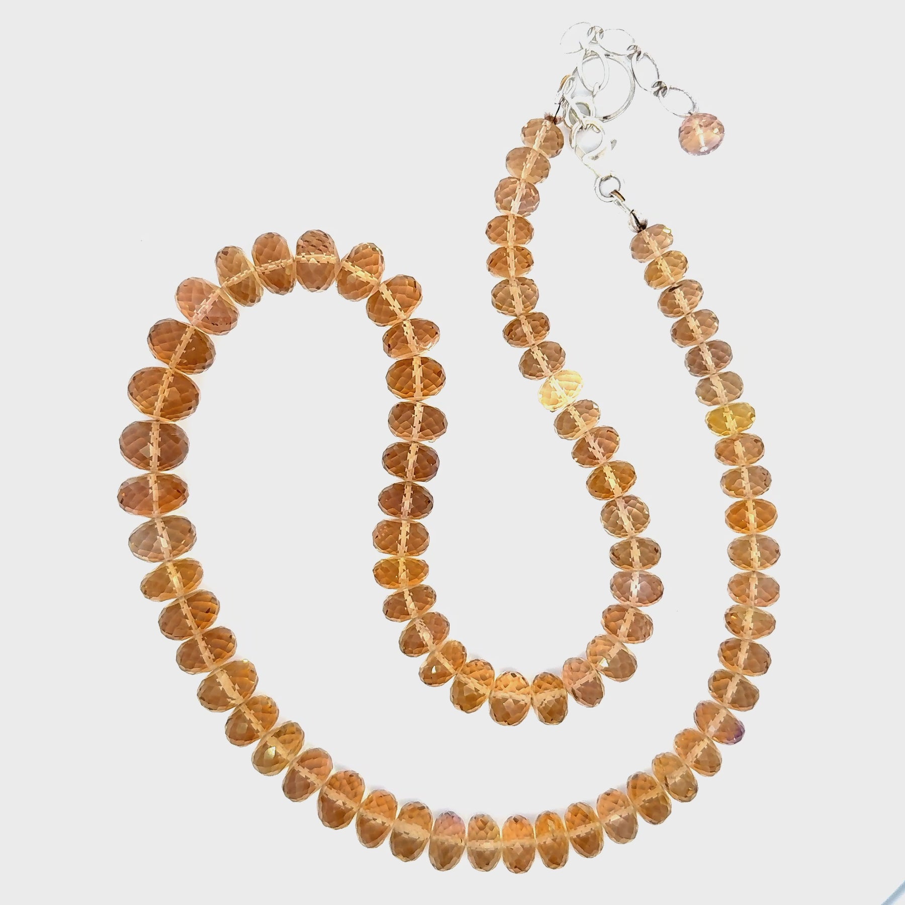 This elegant necklace features faceted Ametrine beads that shimmer with a natural blend of golden Citrine and violet Amethyst hues. Each bead is expertly cut to enhance its brilliance and unique color transitions, making every piece truly one of a kind.